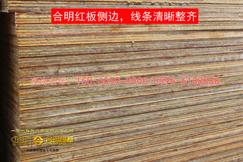 合明紅板由一級(jí)桉木芯板和一級(jí)松木面板壓制而成,其表面滾有合明自主研制的紅色防水膠,每張紅板面板滾1千克膠水,面膠層厚實(shí),防水效果好。合明紅板經(jīng)18道扎實(shí)的制作工藝及細(xì)節(jié)處理,表面平整,結(jié)實(shí)耐磨,周轉(zhuǎn)次數(shù)8次以上,相比市場(chǎng)上同等價(jià)格的模板更加耐用,廣受建筑工地好評(píng)。